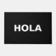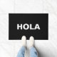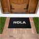 Hola (Hallo auf Spanisch) Schwarz-Weiß minimalistisch modernen eleganten Doormat. Weißer Text auf schlichtem schwarzen, soliden Hintergrund.