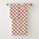 L'ensemble de serviettes de bain de vacances est montré avec un imprimé vert et rouge plaid. Customisez cet objet ou achetez tel quel.