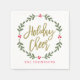 Feierliche Runde Urlaubservietten sind mit dem modernen antiken "Holiday Cheer"-Skripttext gerahmt, der von einem Kranz aus grünen Blätter und rotem Beerenblättern mit dem unten angeführten Text aus rotem Monogramm ist.