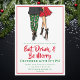 Mit dieser festlichen Weihnachtscocktail-Party Einladung lassen Sie die Urlaubssaison ganz schön genießen! Dieses Design mit einem stilvollen Paar, das zum Eindrücken gekleidet ist - die Frau in einem schicken roten Kleid mit schwarzen Heelsen und der Mann in einer spielerischen Santa-Print Hose mit einem schwarzen Blazer, der ein Bier hält - Set für eine fröhliche Nacht. Personalisieren Sie mit Ihren Party-Details für eine Ansammlung Urlaub Ihre Gäste nicht vergessen!