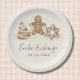 These Holiday Cookie Exchange Party paper plates feature watercolor cookies, gold festive greenery, and stylish script typography on a cream background.