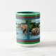 Schöne Holiday Elephant Scripture Tasse einer farbenfrohen, detailreichen Szene mit einem besorgten Mutterelefanten und einem geschwungenen Jungelefanten, der einem zaghaften Elefanten dabei hilft, einen klaren, blauen Fluss zu überqueren, der von üppig grünen Bäumen gesäumt ist. Diese Szene begleitet den Bibelverse Luke 6:31, "Auf andere, wie man sie auf sich nehmen lassen würde." Diese Tasse ist ein wunderbares Geschenk oder kann benutzt werden, um uns an das Wort Gottes zu erinnern.