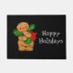 Holiday Haustüre mit schwarzem Hintergrund mit einem niedlichen Lebkuchen Mann Happy Ferien Print. Passen Sie diese Matte an oder kaufen Sie, wie es ist.