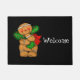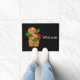 Holiday Türmatte mit schwarzem Hintergrund mit einem niedlichen Lebkuchenmann Begrüßungsdruck. Passen Sie diese Matte an oder kaufen Sie, wie es ist.