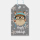 Festliche Weihnachtsgestaltung mit Hipster Llama mit Gläsern und Wintermützen für den Urlaub! Snowflake Hintergrund mit weißem, anpassbarem Text "Happy Holidays"