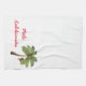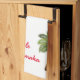 Küchenhandtuch in einer festlichen Urlaubspalmenschrift gezeigt. Mele Kalikimaka ist frohe Weihnachten in Hawaii in der Farbe Rot. Color White Passen Sie dieses Objekt an oder kaufen Sie, wie es ist.
