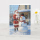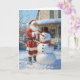 Der Weihnachtsmann, mit seinem warmen Lächeln und dem klassischen roten Anzug, teilt sich einen ruhigen Augenblick im Schnee, während er liebevoll Gebäude mit einem fröhlichen Schneemann vor einer gemütlichen, dekorierten Zuhause beendet. Der Schneemann mit seiner leuchtend orangefarbenen Karottennase, dem Oberhut und dem karierten Schal steht als Symbol der Winterfreude. Der Schnee fällt sanft herum und verleiht der Szene eine Touch Zauber, während farbenfrohe Lichter und ein Urlaubskreath das Haus im Hintergrund schmücken. Diese festliche Karte erweckt die Wärme und Launen von Weihnachten, perfekt, um Freude und guten Willen in dieser Ferienzeit zu teilen.