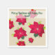 Frohe Weihnachten und glückliche Neujahrstext und Poinsettia, Weihnachten-Blume auf Servietten. Hinzufügen einer benutzerdefinierten Hintergrundfarbe.