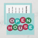 Party Einladung öffnen mit anpassbarem Text auf der Rückseite. Ideal für Weihnachten, Feiertage oder Feiertage - geschäftlich oder privat - mit rot, blau und grün prunkvollen Kreisen moderner Typografie. Ändern Sie den Text in Ihre benutzerdefinierten Informationen oder löschen Sie alle Zeilen, die Sie nicht benötigen.