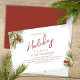 Dieses Design bietet eine Weihnachtskalligraphie-Schrift-Einladung mit grünem Blattwerk Winterholzbeeren-Kunstwerk, ein botanisches Kiefernblatt, ein klassisches Rot- und Gründesign, mit einem schlichten minimalistischen Stil, ein kreativer, stylischer Typografie-Schriftart, eine elegante und elegante zeitgenössische Einladung zum Weihnachtsfeiertag, ein Familienfreund Business-Event