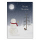 Snowman avec étoile d'or pour pin sous une pleine lune.