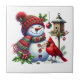 This ceramic tile is shown with a festive Christmas Snowman and cardinal bird art print.