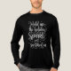 This fun Christmas T-shirt features the playful holiday quote “Hold up, the holiday sparkle just switched on” in a whimsical white cursive font on a black background.
