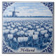 Holland tulip field and windmill Delft Blue style ceramic tile. Generative content with photography by Velvet Escape.