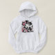 Eine niedliche schwarz-weiße Highland Kuh mit einem schwarzen Hut, der mit rosa Blume geschmückt ist und Charme und künstlerisches Design beweist.