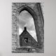 Die hohlen Überreste einer Kirche in Schwarz-Weiß-Film. St. Louis, Missouri.