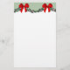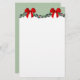 Feierliche Urlaubspapier, in Weiß gemacht, mit einem hellgrünen Header, umgeben von einer Garage mit heiligen Blätter und leuchtend roten Satin-Aussehenden Bögen. Anpassen, um zusätzlichen Text hinzuzufügen oder auf Ihrem eigenen Drucker auf Zuhause zu verwenden. Liebliches Papier für Ihren jährlichen Weihnachtsbrief.