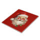 Keramik Kachel mit einer fröhlichen Abbildung eines Vintagen Weihnachtsmannes mit roten, roten Wangen, mit seiner klassischen roten Weihnachtsmannmütze und seinem großen weißen Bären. Der heilige Geist dieses Designs wird durch einen Hauch von Heiligenschein unterstrichen.