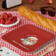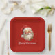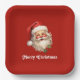 Papier Teller mit einer fröhlichen Abbildung eines Vintagen Weihnachtsmannes mit roten, roten Wangen, mit seiner klassischen roten Weihnachtsmannmütze und seinem großen weißen Bär. Der heilige Geist dieses Designs wird durch einen Hauch von Heiligenschein unterstrichen.