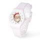 Eine Armbanduhr mit einer fröhlichen Illustration eines Vintagen Weihnachtsmannes mit roten, roten Wangen, die seine klassische rote Weihnachtsmannmütze und seinen großen weißen Bären trägt. Der heilige Geist dieses Designs wird durch einen Hauch von Heiligenschein unterstrichen.