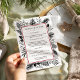 Modernes und elegantes Weihnachtsabendessen-Design von Redwood & Vine präsentiert Ihre köstlichen Geschirr, gerahmt von einem kranberrten Rahmen, mit festlichen Botanicals, die an den Rändern in schicken Schwarz-Weiß.
