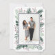 Modernes und elegantes Design von Redwood & Vine bietet Ihr bevorzugtes vertikales Foto, gerahmt von einer mitternachtsblauen Grenze mit schicken Botanicals, die an den Rändern herausschauen, inklusive Jäger-grüne Pinienbäume, Salbei-grüne Blätter und hellrote Beeren. Personalisieren Sie Ihre persönliche Nachricht (mit "fröhlichen Weihnachten" gezeigt) und Ihren Namen in klassischem und stilvollem Block und kursiv Schrift.