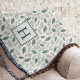 Genießen Sie die Urlaubssaison mit unserer festlichen und schicken gemusterten Wurfdecke mit Ihrem Single Initial Monogramm, umgeben von botanischen Kiefernbäumen, Salbei-Grün-Blätter und Zweigen, die von blühenden roten, heiligen Beeren umgeben sind.