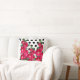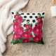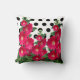 Jeter l'oreiller avec l'image de hollyhocks couleur vin contre un arrière - plan de pois noirs et blancs.
