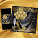 Der Deko der Woman-Dame in Schwarz und Gold lädt zu einer glamourösen Geburtstagsfeier ein, bei der Sie wunderschöne goldene Glitzer-High-Heel-Schuhe, Goldballons, Champagner und Perlen auf einem glamourösen und luxuriösen schwarzen Satin-Hintergrund genießen können. Diese elegante Schwarz-Gold-Geburtstagsfeier lässt sich leicht an Ihre Veranstaltung anpassen, indem Sie einfach Ihre Details in den Schriftart-Stil und Farbe, Wortlaut und Layout Ihrer Wahl einfügen. Sie können auch die Wirbel, Champagner und Ballons verschieben oder löschen. Das ist ein gedrucktes Design ohne echte Juwelen, Perlen, Glitzer, etc.