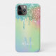 Holographische Unicorn Glitzer Tropfen Script Monogram iPhone Gehäuse.
