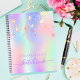 Ein trendiger holografischer, riesenfarbener Hintergrund mit Einhorn- und Regenbogenpastellfarben in Rosa, lila, Rose Gold, Minzgrün. Dekoriert mit Regenbogenfarben fallender Sterne. Personalisieren und einen Namen hinzufügen, Der Titel: Sketchbook geschrieben mit einem mädchenhaften modernen handgeschriebenen Stil Skript mit Swashes. Lila Buchstaben. Ein Notizbuch für Zeichnungen, Skizzen, Noten und Hausaufgaben in der Schule.
