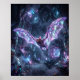 A mysterious hologram bat flies through a vast neon cavern, formed from translucent wing membranes, glowing bone structures, and luminous motion trails. Violet, cyan, magenta, and silver tones shimmer across its agile silhouette while sharp ears and focused eyes add dramatic intensity. Crystal walls, hanging stalactites, reflective pools, drifting mist, and hidden tunnel lights create a cinematic underground world. This striking nocturnal design is perfect for gaming rooms, studios, offices, and fans of dark futuristic themes.