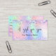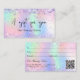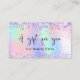 Un arrière - plan holographique branché aux couleurs unicorne et aux couleurs arc-en-ciel rose, violet, vert menthe. Décoré de confettis. Personnalisez et ajoutez votre nom d'entreprise à l'avant Retour : Modèles pour votre nom, adresse, coordonnées et votre propre code QR sur votre site Web ou votre compte de médias sociaux. Parfait pour les femmes entrepreneurs, consultants, salons de beauté, propriétaires d'entreprises.