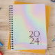 Simple papeterie personnelle planificateur annuel avec holographique couverture d'image. Planificateur annuel (12 mois) avec des aperçus mensuels ouverts et des feuilles de planification hebdomadaires. Contact pour assistance à la personnalisation.