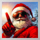 Kühner und verspielter Weihnachtsmann in Sonnenbrille, strahlend göttliches Licht. Dieses einzigartige Konzept verbindet Urlaubsjubeln mit einer Touch himmlischer Kühle.