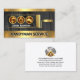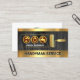 Ein exquisites graues Holzgehäuse mit einem handlichen Werkzeugdesign, das durch goldene Schichten in den oberen und unteren Kartenschichten eingekapselt ist. Die Werkzeuge, d.h. das Bohrband, der Power-Stecker, der Wasserhahn und der Rollenbürste, können einige der Dienstleistungen darstellen, die Sie anbieten. Die Holzschicht selbst kann Schreiner, Holzarbeiten usw. darstellen. In der Nähe der abgerundeten Ikonen liegt Ihr Prestigename mit dem Firmennamen "HANDYMAN SERVICE" an der Basis. Auf der Rückseite, in einem weißen Deckel, befindet sich oben ein goldenes "Zuhause-elektrische Säge"-Logo, das Sie verwenden können. Danach folgen Ihr Name, die Kontaktdaten und ein Slogan, um Ihre Dienste bekannt zu machen. Ein kreatives Design für Handwerker, Generalunternehmer zum Gebrauch. #handyman #construction #homeconstruction #Gebäude #homerepair #buildingtragning #generaltragnant #builder #remodelder #handymantools