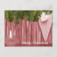 Das ist Holz Hintergrund mit Kerze, Weihnachtsbaumblättern und Holzherz Frohe Weihnachtspostkarte.