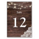 Dress up your wedding oder Party Tische mit diesem Holz, Spitze, Saitenleuchten Tischnummer Card.