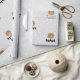 Sweet Packpapier boho Design. Ein schöner Waldbär mit Fußabdrücken für den Hintergrund. Für Jungen oder Mädchen. Jeden Anlaß Geschenkpackung.