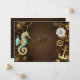 Brauner Holzboden mit Meer, mechanischer Rücken, antikes Lenkrad, goldener Anker und verschiedene Gold- und Messinggetrieben. Steampunkstil.