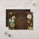 Brauner Holzboden mit Meer, mechanischer Rücken, antikes Lenkrad, goldener Anker und verschiedene Gold- und Messinggetrieben. Steampunkstil.
