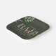 Holzdusche mit "BABY"-Text in Holzdesignbriefen, umgeben von Eukalyptuspflanzen und Waldtieren wie Eichhörnchen, Eule, Vögel, Fuchs, Hirsch und Igel. Hintergrund ist dunkelgrün.