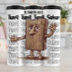 Diese sonderbare Grafik zeigt einen personifizierten Holzblock mit einem Gesicht, Armen und Beinen. Der Charakter hat einen traurigen Ausdruck, während er einen Daumen hochhält. Der Text 'Tunq Tunq Tunq Sahur' wird im Hintergrund wiederholt, wodurch ein humorvolles und einzigartiges Design entsteht.