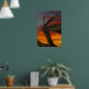 Künstlerisches Stück des Sonnenuntergangs im Hintergrund, Holz in der Vorderseite, das einem Drachen ähnelt.