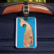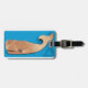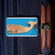 ein geschnitzter hölzerner Wal auf blauem Hintergrund