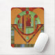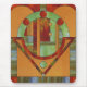 Vintager Kunst-Dekoentwurf. Warmes Holz und cooler grüner geometrischer Entwurf.