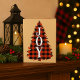 Eine reizende Weihnachtskarte mit einem karierten Weihnachtsbaum Holzfäller des Büffels, "Freude" wird auf die Front, personifizieren Ihr heute geschrieben!