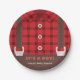 Sein ein Junge! Dieser Babyduschen-PartyversorgungspapierTeller ist entworfen, um wie eine Holzfällerausstattung des karierten Shirts des roten Büffels, der braunen Hosenträger und der Hosen auszusehen. Vervollkommnen Sie, damit Mamma ist, wer ein Baby erwartet! Fügen Sie Ihre Babyduschenmitteilung in den bereitgestellten Text-Vorlagen hinzu.