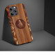 Ein prächtiges Design mit einem schlichten Holzband im Zentrum, umgeben von einem dreieckigen, abgerundeten Muster aus geschnitztem Holz mit kontrastierenden Holztönen. In der Mitte wird Ihr Monogramm in einem Kreis mit prächtigen, miteinander verflochtenen Buchstaben dargestellt, als ob es im Holz graviert wäre. Sehr raffiniertes Accessoire , dieses Gehäuse fügt eine schicke dekorative Touch zu Ihrem Telefon .