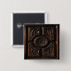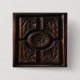 Dieses Button ist mit einem schönen, kunstvollen Holzschnitzereien in Braun-, Gold-, Mahagoni- und Schwarztönen dekoriert. Eine zentrale abstrakte kreisförmige Blume mit Blütenblättern, die zu einem geschnitzten Kreis ausstrahlen, der von vier Bereichen umgeben ist. Jede Abteilung hat abstrakte Schnitzereien.
